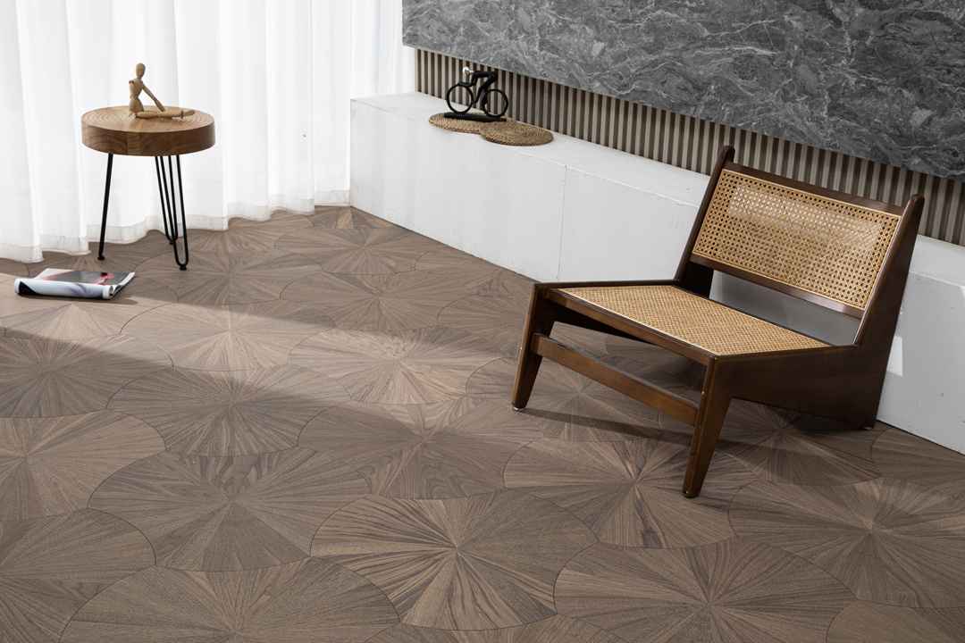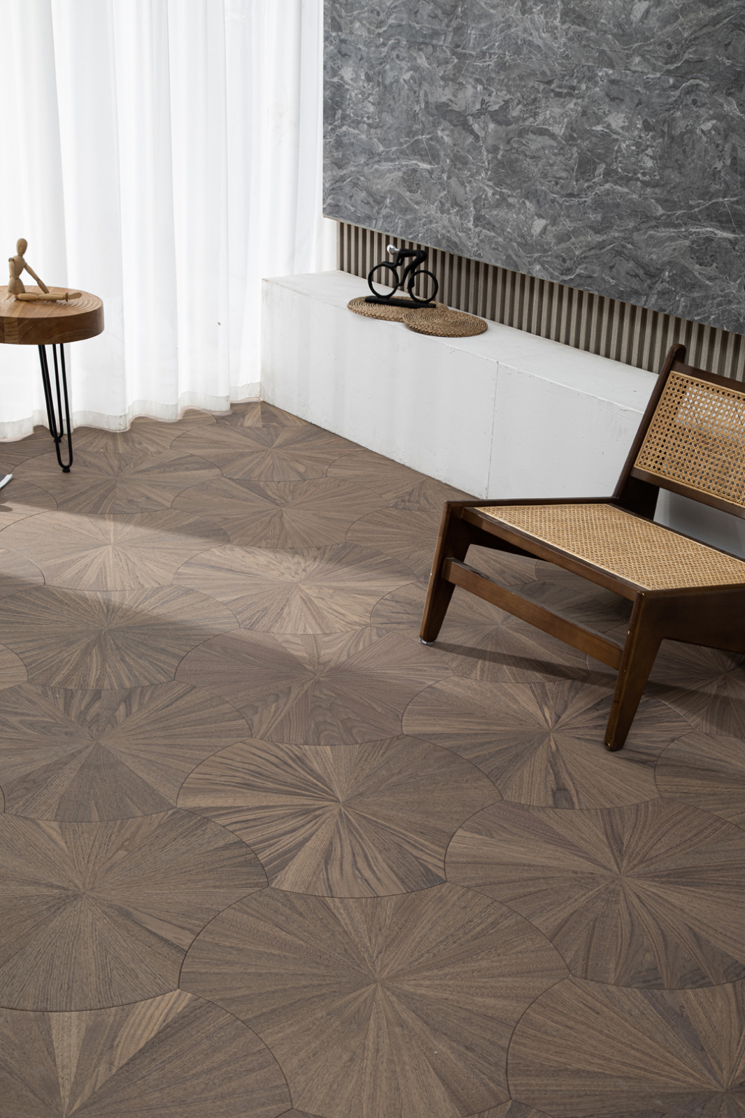 ParchetDecor Parchet dublustratificat Cosy Art Lotus, stejar sau nuc american, model inspirat din frunză de lotus, strat uzură 1.2 mm/3 mm, 600×600×15 mm,