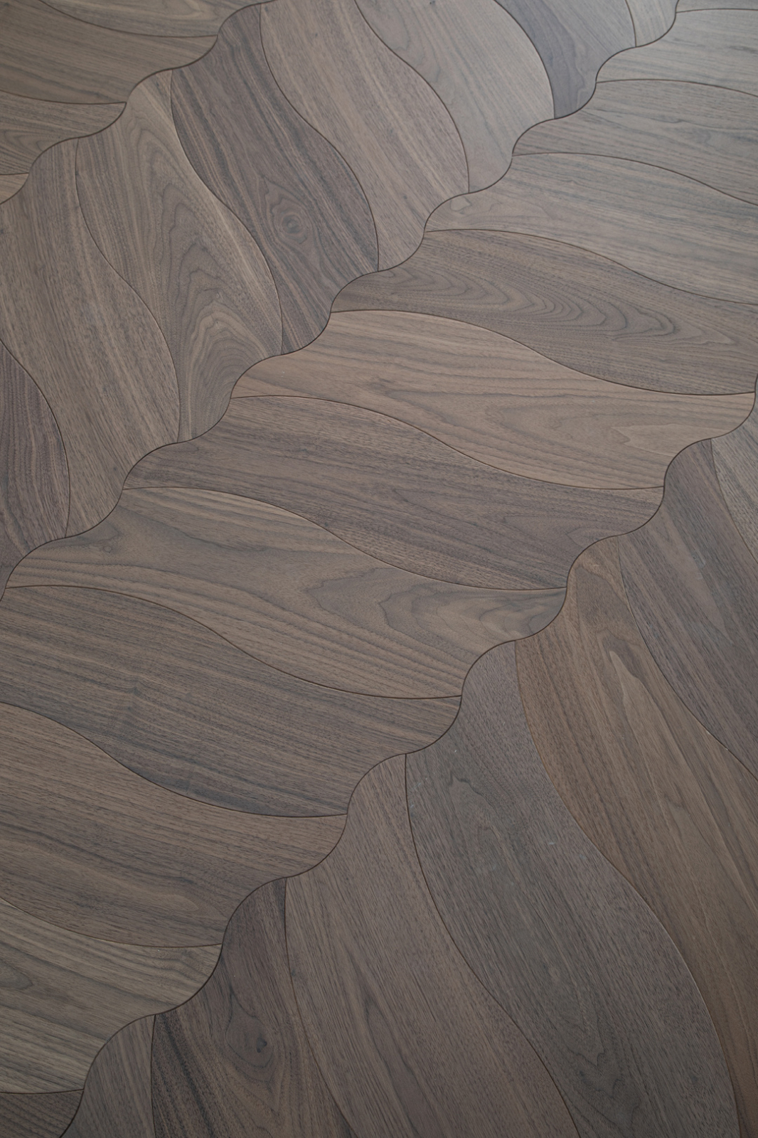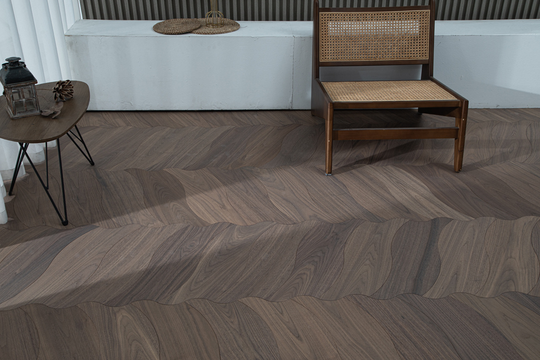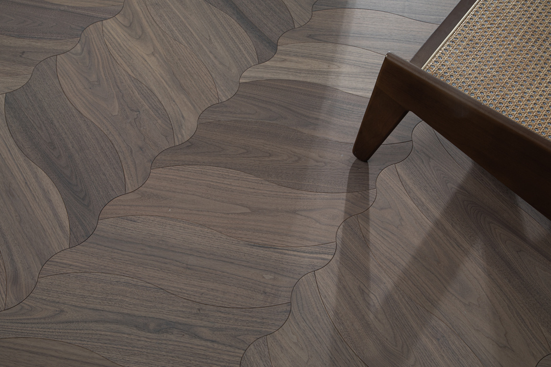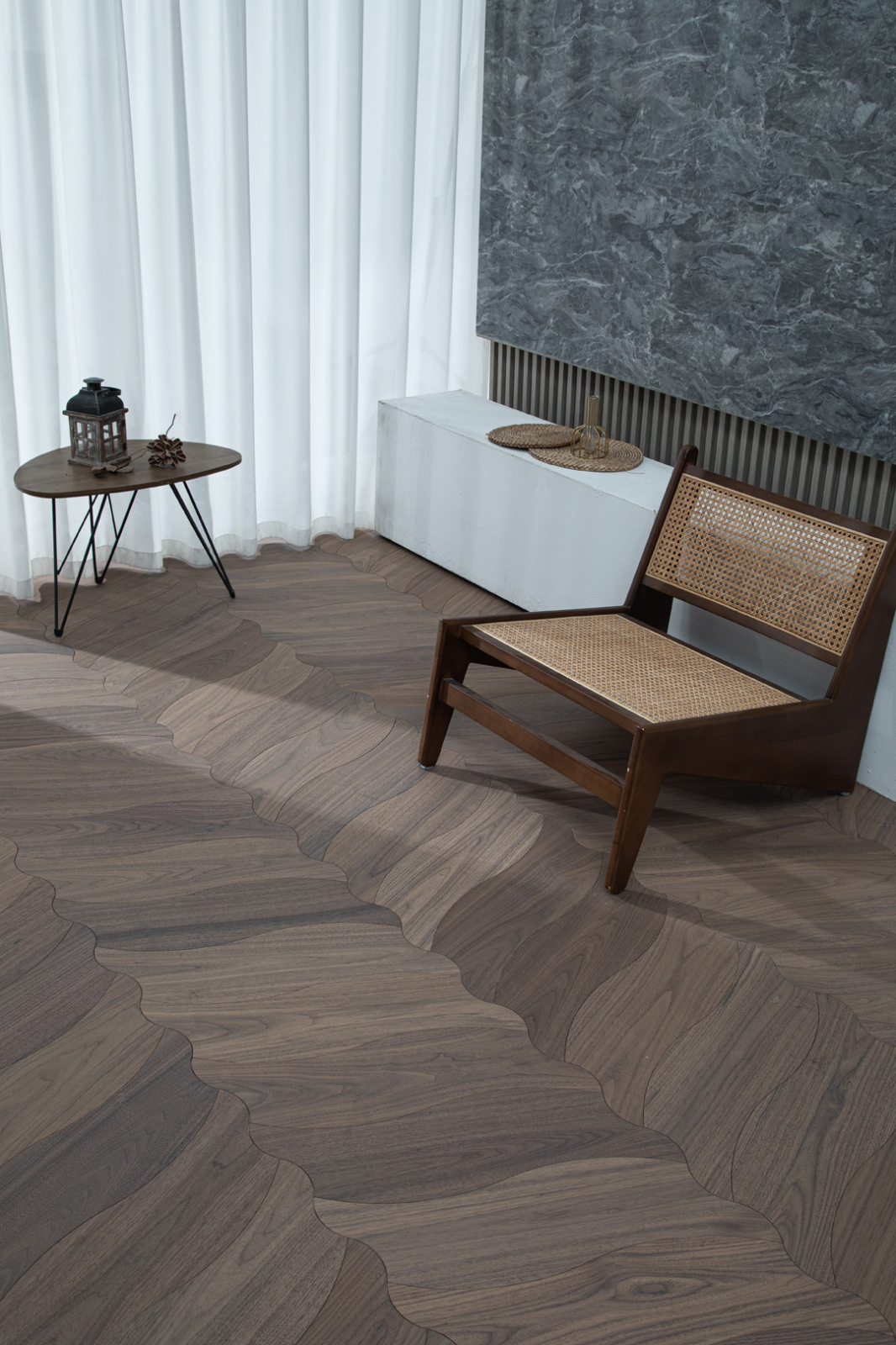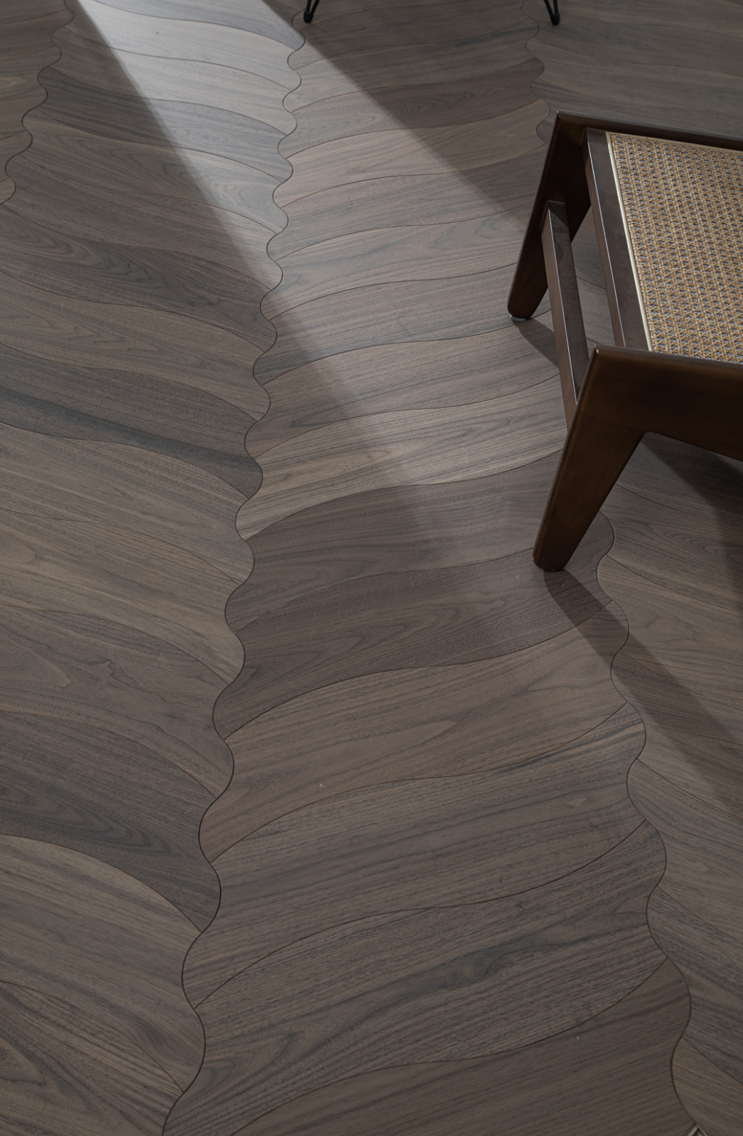 Modelul Wave (Big Leaf) valorifică esența naturii – suprafața valurită evocă organic frunza și ondulația apei, creând o pardoseală expresivă, cu impact vizual imediat. Disponibil în variante de nuc american (Black Walnut) sau stejar european, Cosy Art Wave permite personalizarea ambianței, de la tonuri calde, profunde, la aspecte naturale, moderne și rafinate.